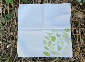 親子で身近な樹木や生き物の特徴、つながりを観察し、集めた草花でこすり染めを体験する。